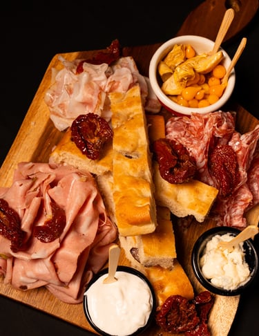 Pide nuestras focaccias artesanales, tablas de embutidos italianos directamente a casa.